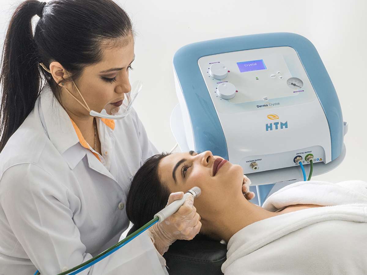 A HTM Eletrônica possui em sua linha dois equipamentos de microdermoabrasão: o Dermo Crystal, que permite a realização do peeling de cristal e diamante e o Beauty Dermo, que além da vacuoterapia corporal e facial, pode ser utilizado com o peeling de diamante.
