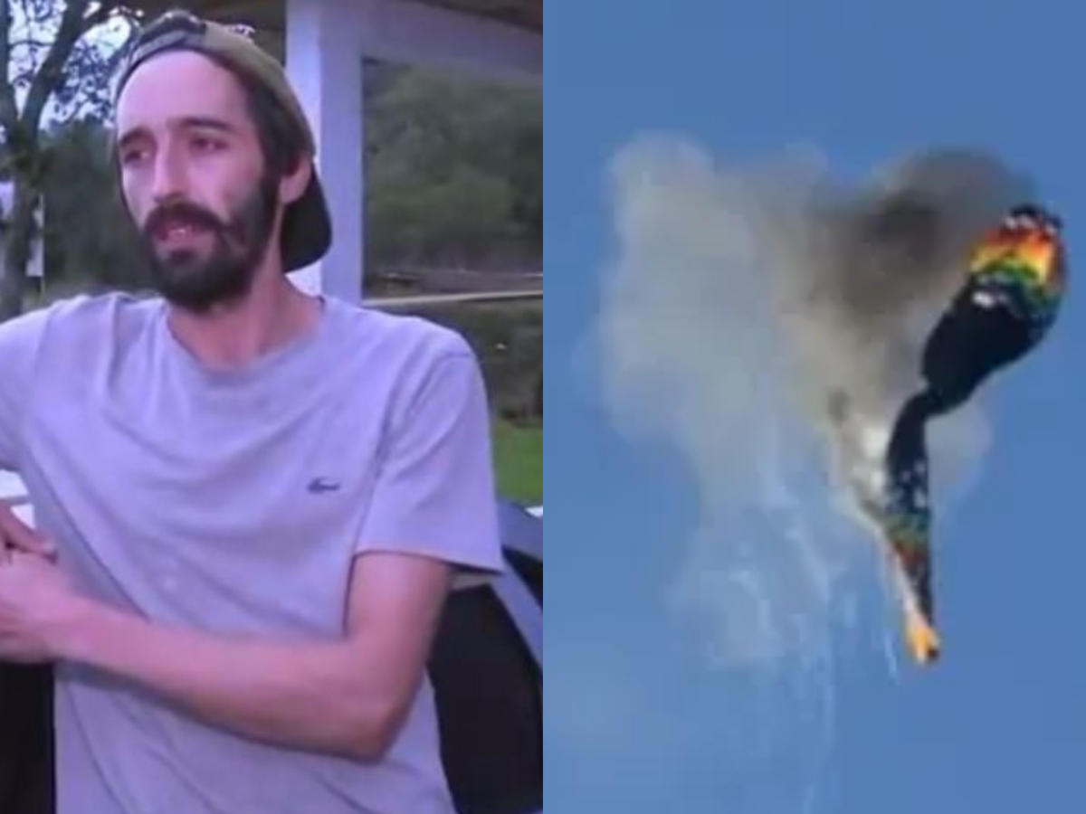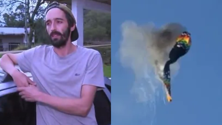 Um dos sobreviventes da queda do balão, que aconteceu no sábado (21) em Praia Grande, Santa Catarina, foi visto ajoelhado e rezando em frente a uma igreja logo após escapar do acidente. Segundo relatos, ele fazia parte do grupo que conseguiu pular antes do balão cair.
