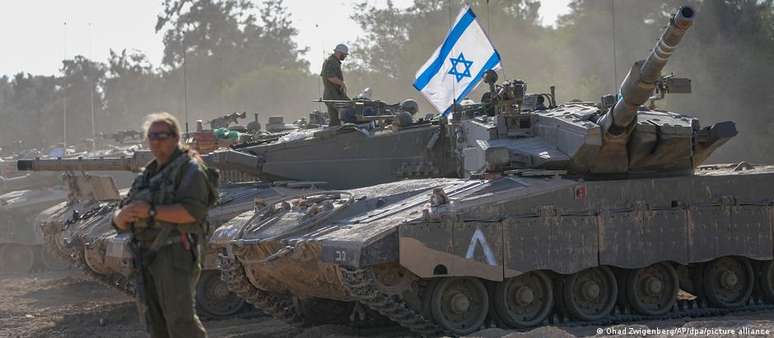 Ofensiva de solo preparada por Israel tem como fim declarado aniquilar o grupo radical que administra o enclave palestino desde 2007. E depois? Especialistas propõem cinco cenários - cada um com sua problemática.Israel mobilizou cerca de 350 mil reservistas, uma parte de seu exército se encontra na fronteira com o Líbano, outra na com a Faixa de Gaza. Objetivo da longamente esperada ofensiva de solo nesse território palestino é a aniquilação do grupo radical islâmico Hamas, classificado como organização terrorista pela União Europeia, Alemanha, Estados Unidos e outros países, também do Oriente Médio.