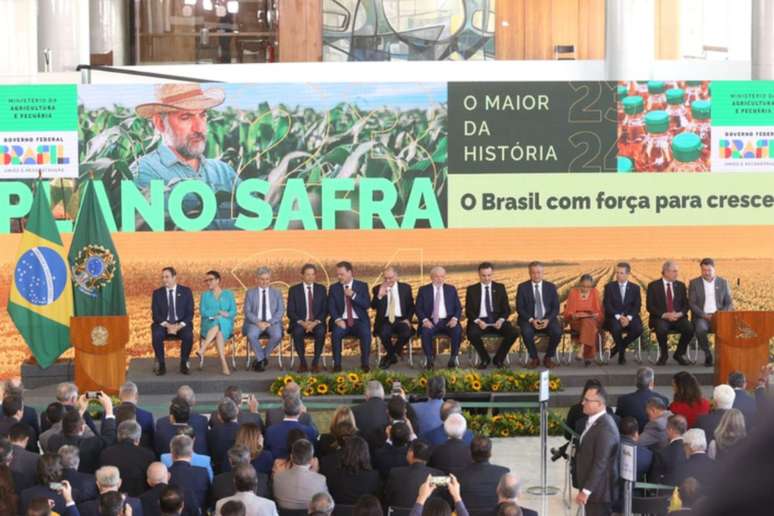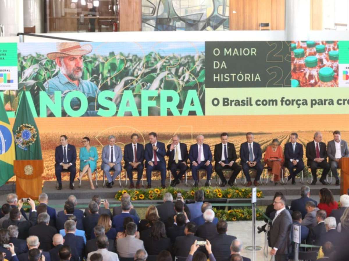 A previsão de R$ 364 bilhões em créditos rurais para médios e grandes produtores foi anunciada nesta terça-feira (27), durante a cerimônia de lançamento do Plano Safra 23/24. O evento ocorreu no Palácio do Planalto, em Brasília.