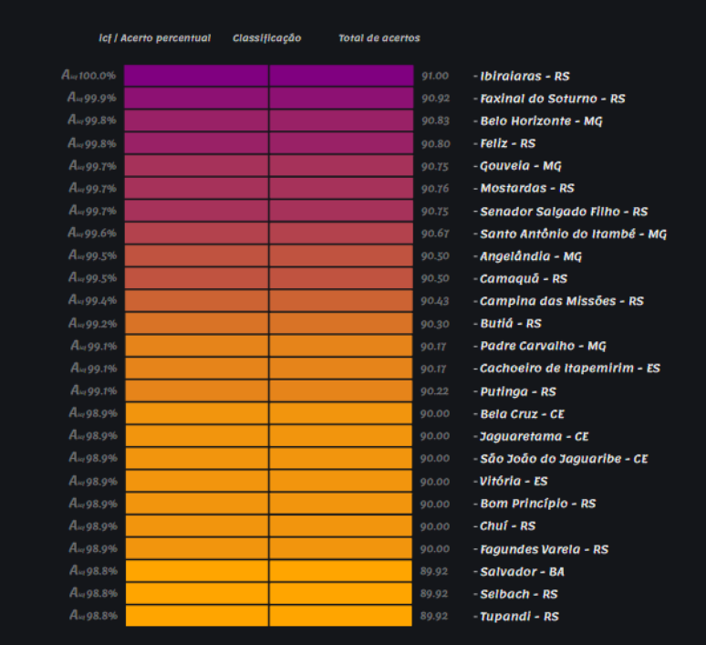 O estado de Minas Gerais passa de 4% para 20% em representação com cidades no ranking da qualidade da informação contábil e fiscal