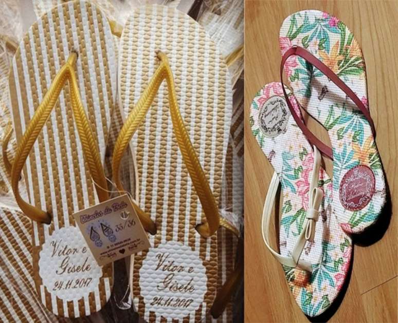 Rasteirinhas e chinelos personalizados para casamento têm sido as opções de lembrancinhas mais escolhidas pelos noivos