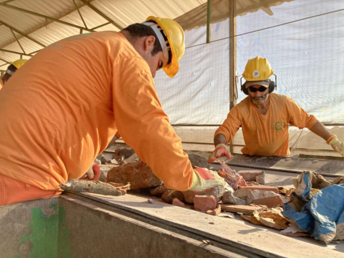 São produzidos, em média, oito mil metros cúbicos de agregados reciclados (brita, areia e outros) por mês