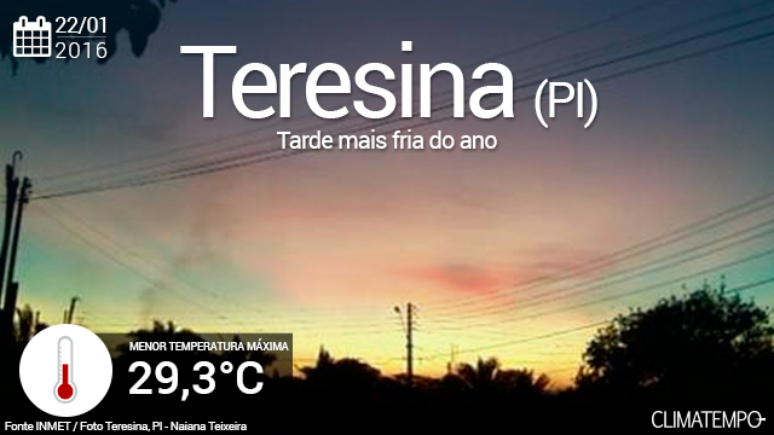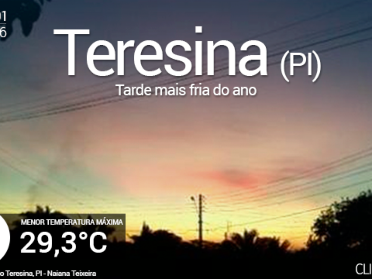 Numa semana marcada por muita nebulosidade e chuva frequente, o ar esfriou sobre o Nordeste e várias capitais registraram as tardes mais frescas do ano. Na sexta-feira, 22,foi a vez de Teresina, capital do Piauí, ter a menor temperatura máxima até agora.