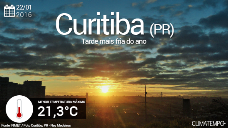 O Sul do Brasil passou a semana com sol forte e as tardes foram muito quentes em todos os estados. Mas uma mudança na direção dos ventos levou muita umidade para Curitiba, que gerou uma grande quantidade de nuvens. Com o céu nublado o dia todo e até chuva fraca, a tarde do dia  22 de janeiro foi a mais fria do ano na capital do Paraná.