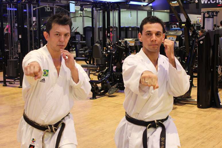 O carateca Jaime Pereira de Souza Junior com seu coaching Giovani Sakata, participarão da competição