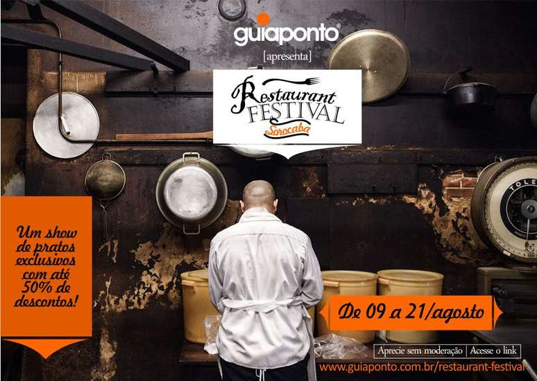 O Guiaponto Sorocaba, após conquistar um arsenal com mais de 170 restaurantes, chega com uma surpreendente proposta: a de "conectar restaurantes e pessoas". O RESTAURANT FESTIVAL vem oferecer uma excelente oportunidade aos apreciadores de uma boa gastronomia, de provarem cardápios dos mais renomados restaurantes da cidade. Os restaurantes participantes reúnem-se para proporcionar a você uma experiência incrível com descontos de até 50%.