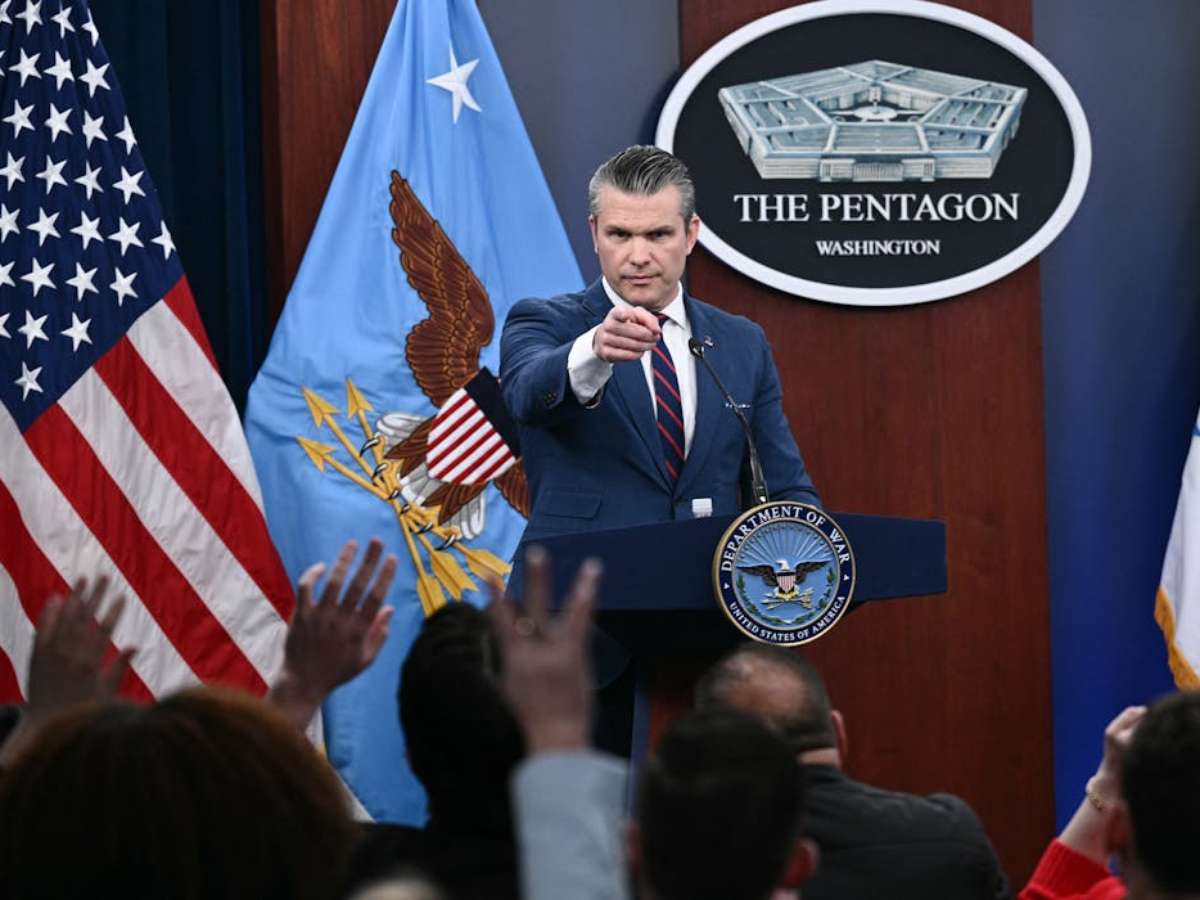 Coletiva de imprensa de Pete Hegseth no Pentágono, na qual ele afirmou que a guerra com o Irã não teria 'regras de engajamento estúpidas, nem o atoleiro da reconstrução nacional, nem o exercício de construção da democracia'.