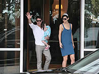 Tom Cruise desembarca no Rio de Janeiro acompanhado da mulher, a atriz Katie Holmes, e da filha do casal, Suri. Ao chegar ao hotel Copacabana Palace, o ator acena para fãs que o aguardavam no local