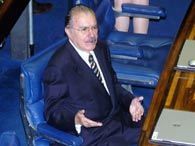O ex-presidente da República Jose Sarney (PMDB-AP) consegue se eleger como novo presidente do Senado com 49 votos, derrotando o seu concorrente, o senador Tião Viana (PT-AC), que faz 32 votos
