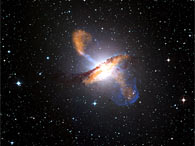 A Nasa divulga a imagem em cores que identifica a violenta intensidade do campo gravitacional de um novo buraco negro supermassivo em uma galáxia lenticular vizinha à Terra. Câmeras de alta definição registram a longa faixa de poeira e gás e resquícios de estrelas que ficaram pelo caminho do objeto, situado na galáxia Centaurus A