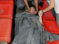 Chegando em várias ambulâncias ao posto médico instalado no portão principal do estádio, torcedores alvinegros acusam a PM de ter causado a situação