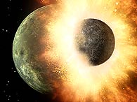 Nasa divulga concepção artística que mostra uma colisão em alta velocidade entre dois planetas ao redor de uma jovem estrela. O impacto, captado pelo telescópio Spitzer, envolveu dois corpos rochosos e teria ocorrido nos últimos mil anos ou mais