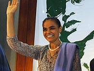 Senadora Marina Silva (AC) assina termo de filiação ao PV em cerimônia em São Paulo. Ela saiu do PT para se candidatar à Presidência em 2010