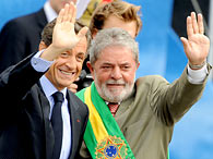 Em visita ao Brasil para assinar acordos militares, o presidente da França, Nicolas Sarkozy, diz, durante entrevista coletiva, apoiar integralmente o pleito brasileiro por um assento permanente no Conselho de Segurança da Organização das Nações Unidas(ONU)