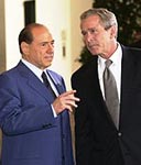 | | Berlusconi e Bush: aliados contra o terror (Foto: AP) |