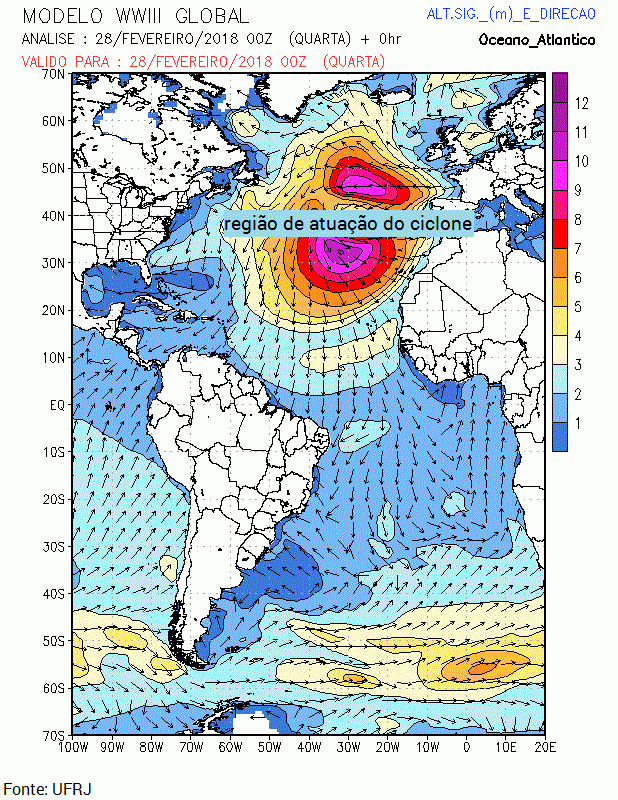 As grandes ondas começam a chegar ao litoral entre o Amapá e o norte do Rio Grande do Norte durante a madrugada do dia 1 de março, quinta-feira. As ondas podem atingir alturas entre 2,5 m e 3,0 m. A Marinha do Brasil emitiu alerta para ressaca da ilha de Santana, no litoral do Maranhão, até Touros, no Rio Grande do Norte. No litoral leste do Rio Grande do Norte e no litoral da Paraíba, as ondas nesta quinta-feira ficam entre 1,5 m e 2,0 m.