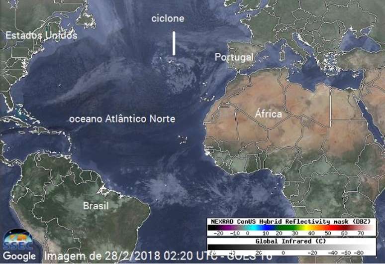Agitação no mar é provocada por ciclone de inverno que provoca vento forte e chuva intensa em parte da Europa
