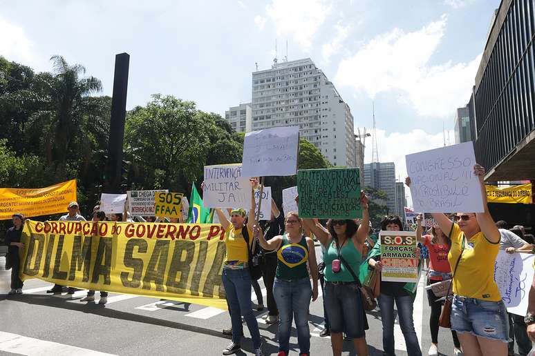 Parte dos manifestantes em São Paulo pedia intervenção militar