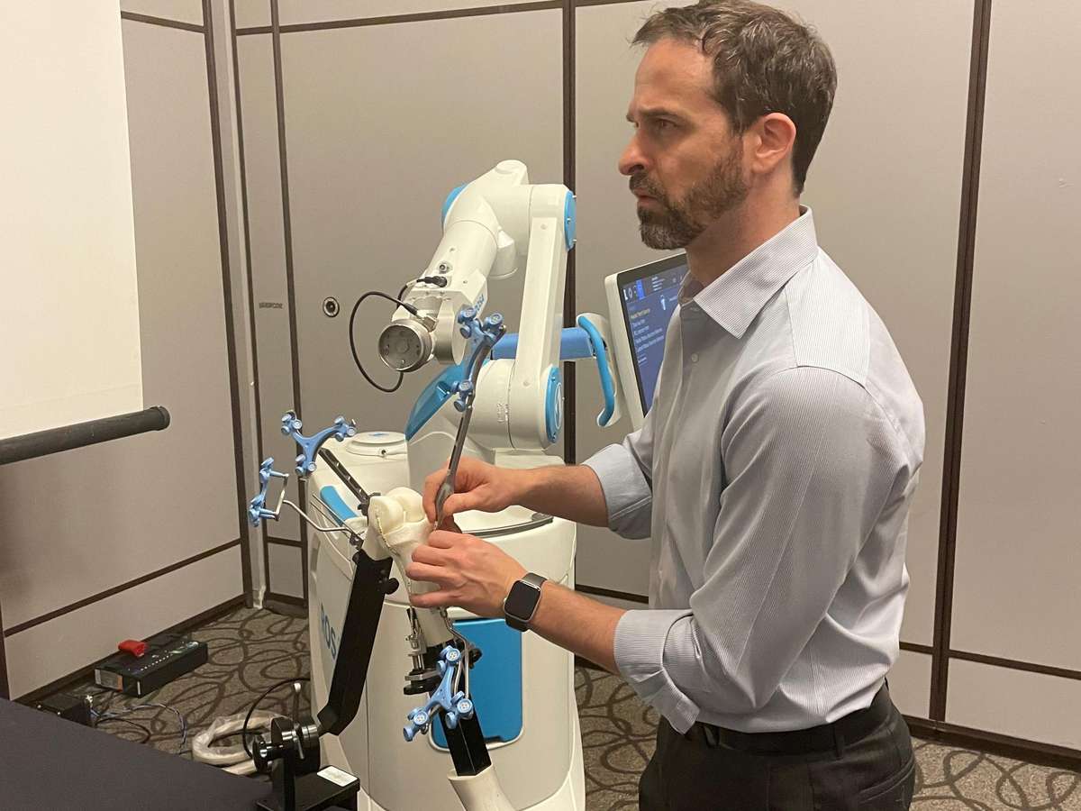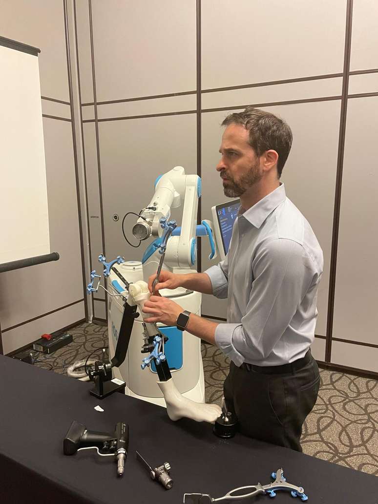O cirurgião afirma que entre os principais desafios para a adaptação às cirurgias de prótese de joelho assistidas por robô está a familiarização com o sistema robótico, já que o cirurgião precisa aprender a operar a plataforma robótica, que inclui manuseio do braço robótico, planejamento virtual pré-operatório e uso dos sensores de navegação em tempo real.