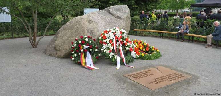 Há anos a Alemanha planeja um memorial para os milhões de mortos na Polônia ocupada na 2ª Guerra. Atrasos levaram a solução provisória, e "pedra da vergonha" em Berlim desperta antigo clamor por reparação trilionária.Em Berlim, uma rocha de quase 30 toneladas recorda, desde a segunda-feira (16/06), os 5 a 6 milhões de poloneses mortos pelos invasores nazistas durante a Segunda Guerra Mundial(1939-1945). Justamente nesse local do bairro Tiergarten, entre a Chancelaria Federal e o histórico Reichstag, sede do parlamento, ficava a Casa de Ópera Kroll, onde em 1º de setembro de 1939 Adolf Hitler anunciou a invasão da Polônia.