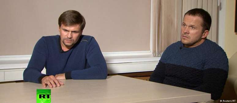 Em entrevista concedida após apelo de Putin, acusados de tentar matar Serguei Skripal afirmam terem sido vítimas de uma "fantástica coincidência" durante férias na Inglaterra. Governo britânico contesta declarações.Dois homens apareceram em um canal público de televisão na Rússia nesta quinta-feira (13/09) para se defender de acusações do Reino Unido de que teriam tentado matar o ex-espião russo Serguei Skripal por envenenamento na cidade de Salisbury. Os homens afirmaram que faziam apenas turismo no local.