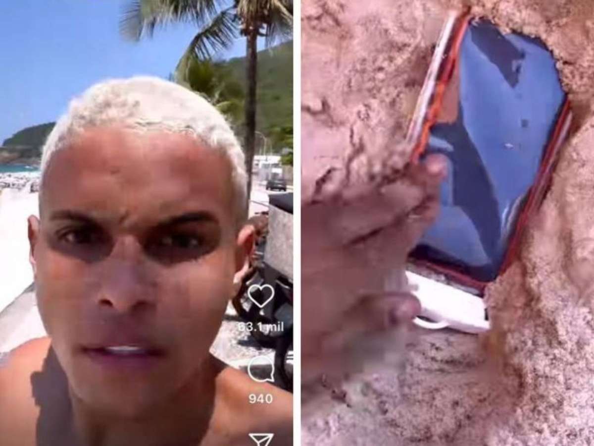 Na gravação, o influencer enterra na areia da praia os pertences (celular e a carteira) em caso de correria e coloca uma camisa por cima para identificar o local. "Dica de Carioca Raiz".