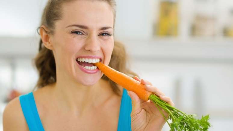 Uma opção prática é a mini cenoura, vendida nos supermercados. "São fáceis de levar, ótimas com coisas como ranch, homus — eu já vi pessoas mergulhá-las em manteiga de amendoim — algumas pessoas gostam delas puras," diz Simmons.