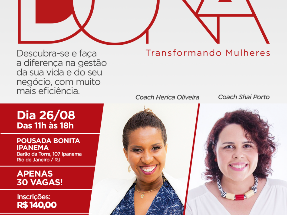 As palestras, exercícios e dinâmicas voltados para a transformação e desenvolvimento pessoal serão ministrados por Herica Oliveira - coach de empreendedorismo e produtividade, e Shai Porto - coach de Alta Performance.