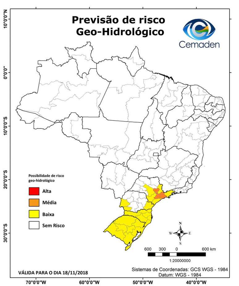 Mapa de risco de deslizamentos do Centro Nacional de Monitoramento e Alertas de Desastres Naturais