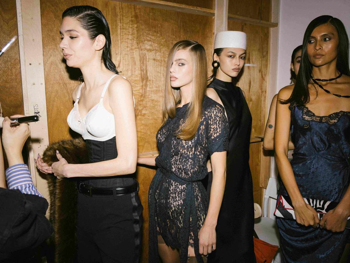 Inspirado na Hollywood das décadas de 1920 e 1950, Cowan deslocou o foco dos holofotes para os bastidores. O ponto de partida foram as roupas íntimas e as peças de camarim usadas pelas estrelas da época. A coleção seguiu com vestidos descontraídos em renda, sutiãs de inspiração vintage pensados para o dia a dia e minivestidos ajustados por tecido franzido.