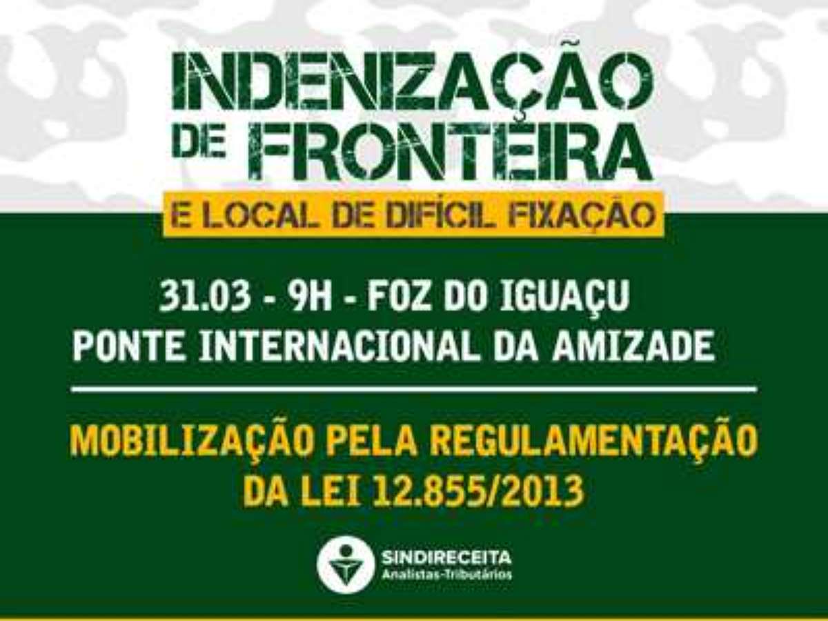 Analistas-Tributários da Receita Federal do Brasil, Agentes da Polícia Federal, Fiscais Federais Agropecuários do Ministério da Agricultura e do Abastecimento, Fiscais da Auditoria-Fiscal do Trabalho e Policiais Rodoviários Federais farão um ato no dia 31 março, às 9h, na Ponte Internacional da Amizade, em Foz do Iguaçu/PR, para cobrar a regulamentação da Indenização de Fronteira, instituída pela Lei nº 12.855, de 2 de setembro de 2013.