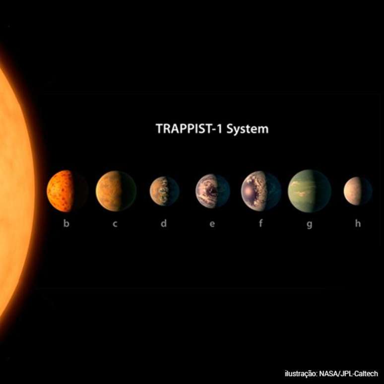 Os planetas orbitam a estrela anã Trappist-1 e a orientação das órbitas dos sete permite que os cientistas os estudem em detalhes. Segundo a Nasa, alguns deles podem ter temperaturas que permitam a existência de água na forma líquida, até mesmo em oceanos.