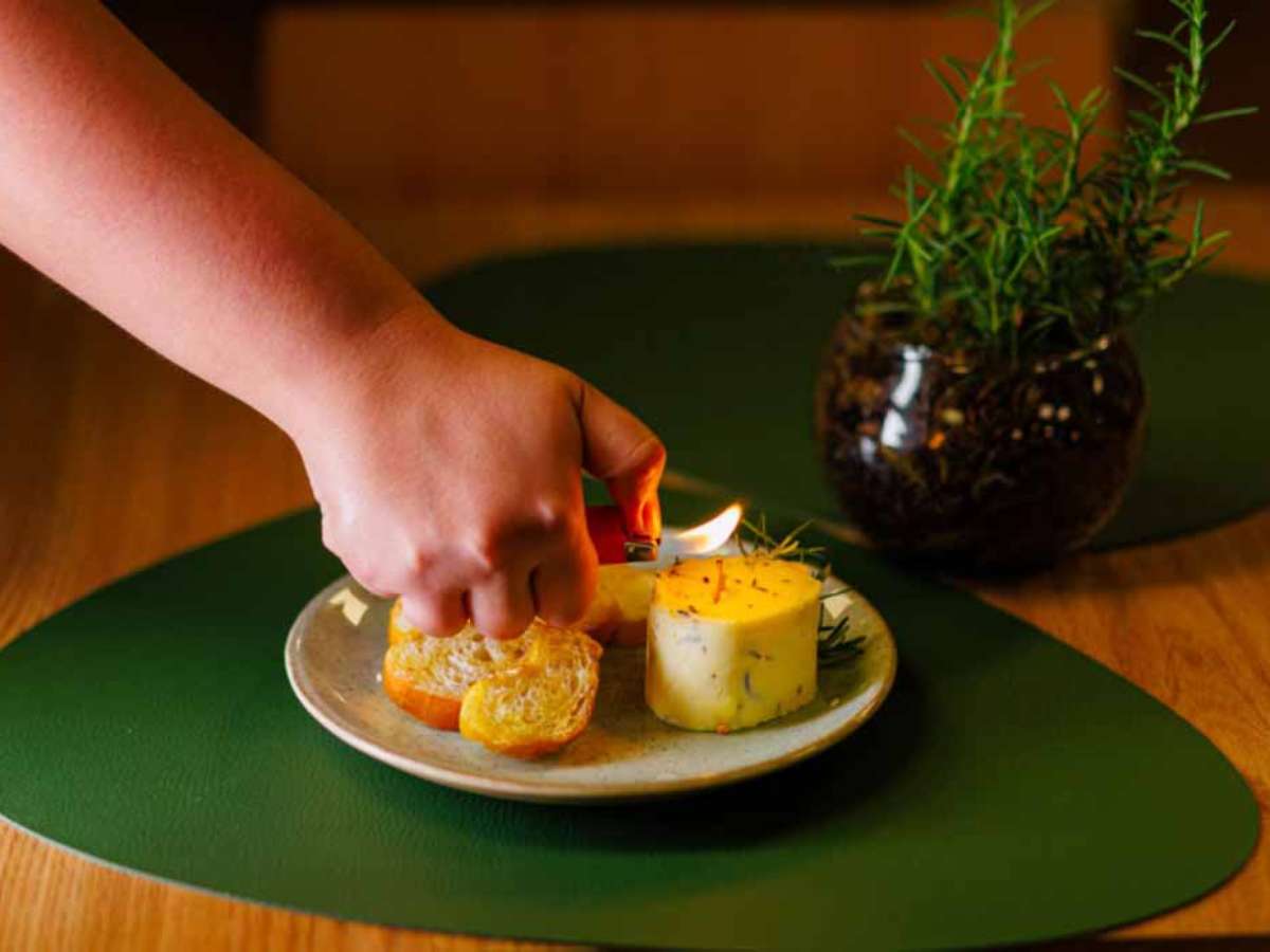 Um dos destaques do Maendú é o couvert, que vai além do tradicional e transforma o início da refeição em uma experiência sensorial. No jantar, os clientes ganham uma manteiga de alecrim em formato de vela, que derrete suavemente ao ser acesa, liberando aromas e sabores e antecipando o conceito afetivo e criativo do restaurante.