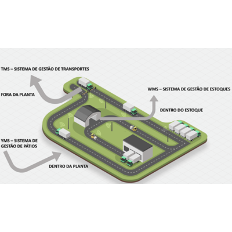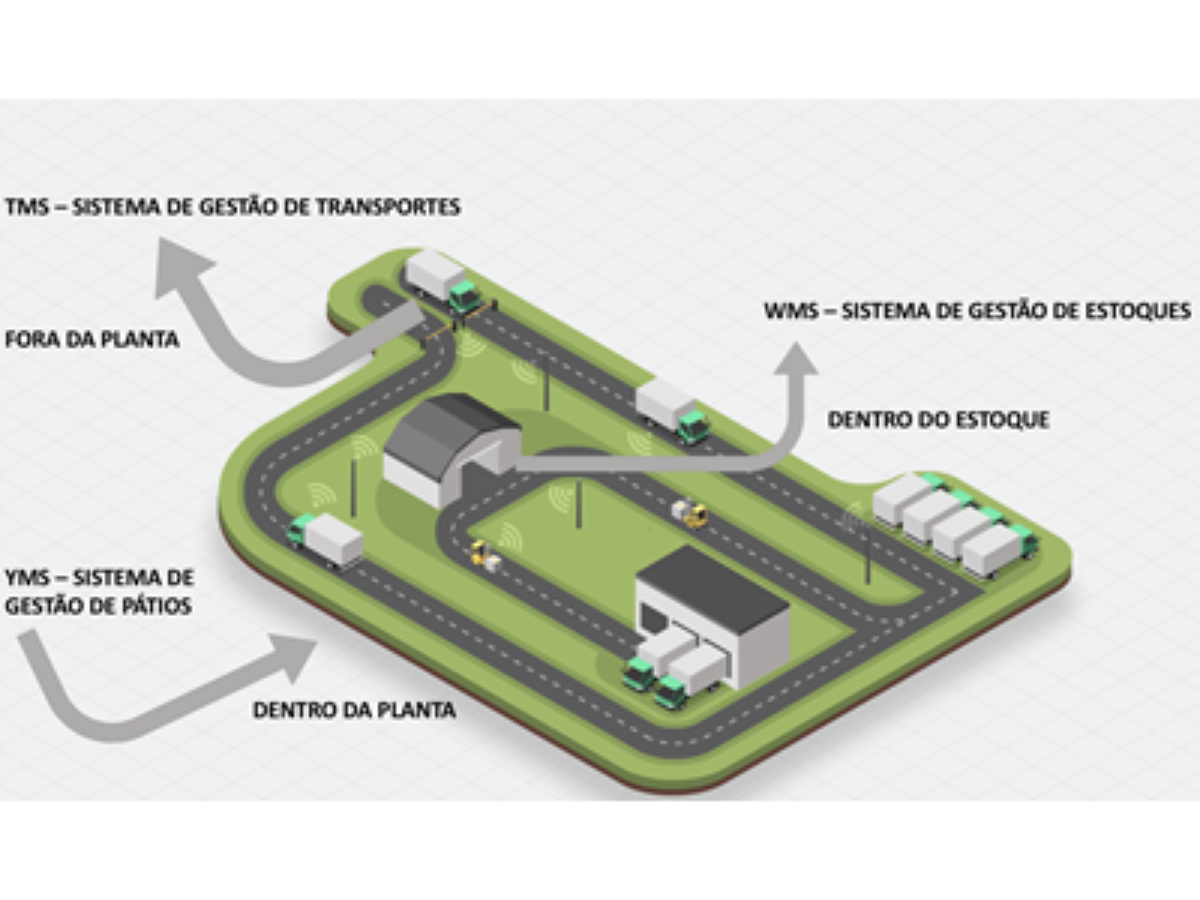 Por outro lado, existe um espaço entre a entrada do estoque e o transporte de materiais que não é coberto nem pelo WMS e nem pelo TMS que é o pátio logístico. O sistema responsável por cobrir e gerir esse espaço é conhecido como Yard Management System (YMS).