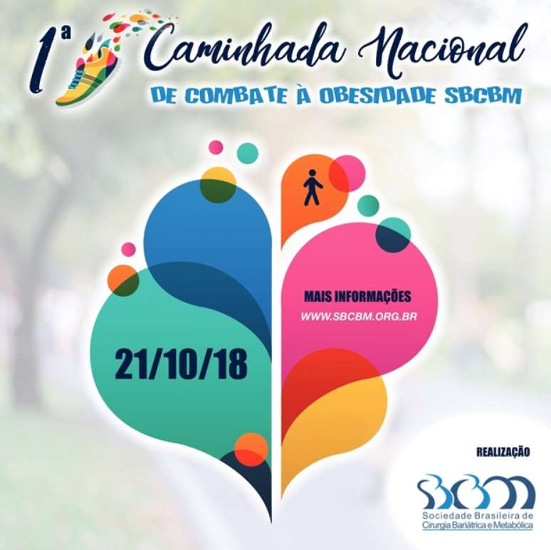 A Sociedade Brasileira de Cirurgia Bariátrica e Metabólica (SBCBM) promove, no dia 21 de outubro (domingo), entre 07hs e 9hs, a 1ª Caminhada Nacional de Combate à Obesidade. O evento será realizado nas cidades de Salvador, Recife, Goiânia, Brasília, São Paulo, Curitiba, Rio de Janeiro, João Pessoa, Fortaleza, Manaus, Vitória e Porto Alegre.