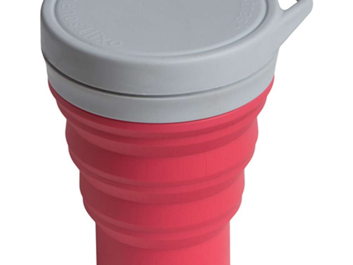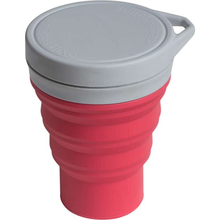 O copo é retrátil e comporta 400ml. Fechado, tem menos de 4 cm de altura, o que garante que realmente cabe em qualquer lugar e é portátil. Uma alça na tampa foi feita especialmente para permitir que o copo também possa ser pendurado na mochila, no chaveiro, em uma corda ou no passador da roupa, basta utilizar um mosquetão.