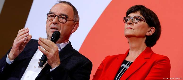 O SPD anunciou que Norbert Walter-Borjans, ex-secretário de Finanças do estado da Renânia do Norte-Vestfália, e a deputada Saskia Esken venceram a eleição pela liderança do partido de centro-esquerda com 53,06% dos votos.