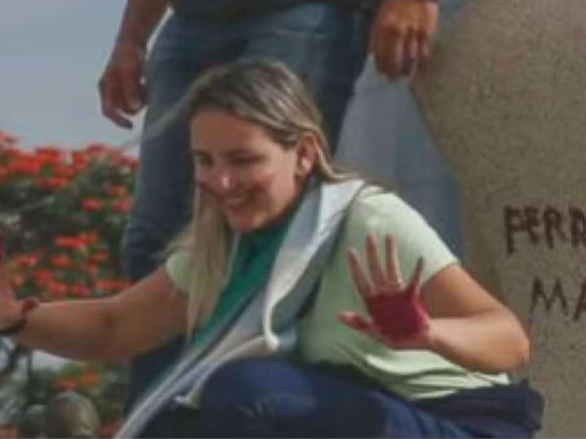 "Pode-se visualizar pelas imagens coletadas, de maneira nítida, a denunciada em cima da estátua 'A Justiça', depredando-a pela escrita da frase 'perdeu, mané', com batom vermelho, cuja cor também se reflete em seu rosto e suas mãos. Está rodeada de inúmeros outros manifestantes e aparenta celebrar a conduta danosa", apontou o Ministério Público.