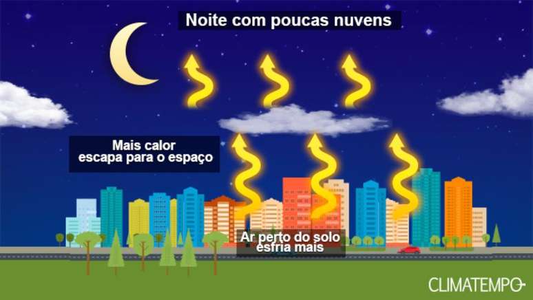 No decorrer do outono/inverno é comum o predomínio de um anticiclone (alta pressão atmosférica) sobre a Região Centro-Oeste. Este sistema gera correntes de ar de cima para baixo ( movimento de ar subsidente ou subsidência do ar) que trazem o ar seco dos níveis atmosféricos mais elevados para níveis próximos da superfície. Com o ar seco, pouca ou nebulosidade se forma nem de dia e bem durante a noite. As nuvens ajudam a reter o calor. Sem elas, o calor que foi armazenado com o aquecimento do sol escapa rapidamente para o espaço depois do por do sol, o que faz o ar esfriar. É mesmo processo que ocorre nos desertos: frio à noite e calor durante o dia.
