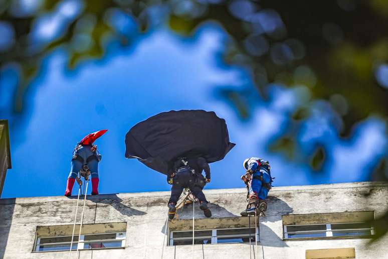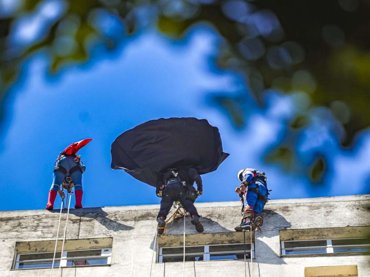 O Hospital Materno-Infantil Presidente Vargas (HMIPV), em Porto Alegre, foi palco de uma cena inesquecível nesta sexta-feira (10). Do alto do 14º andar, alpinistas vestidos de super-heróis desceram as paredes do prédio, surpreendendo os pequenos pacientes que observavam encantados pelas janelas.