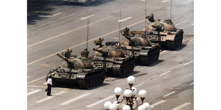 "O Rebelde Desconhecido", a foto mais marcante dos protestos de Tiananmen (Fonte: Jeff Widener/Wikipedia)