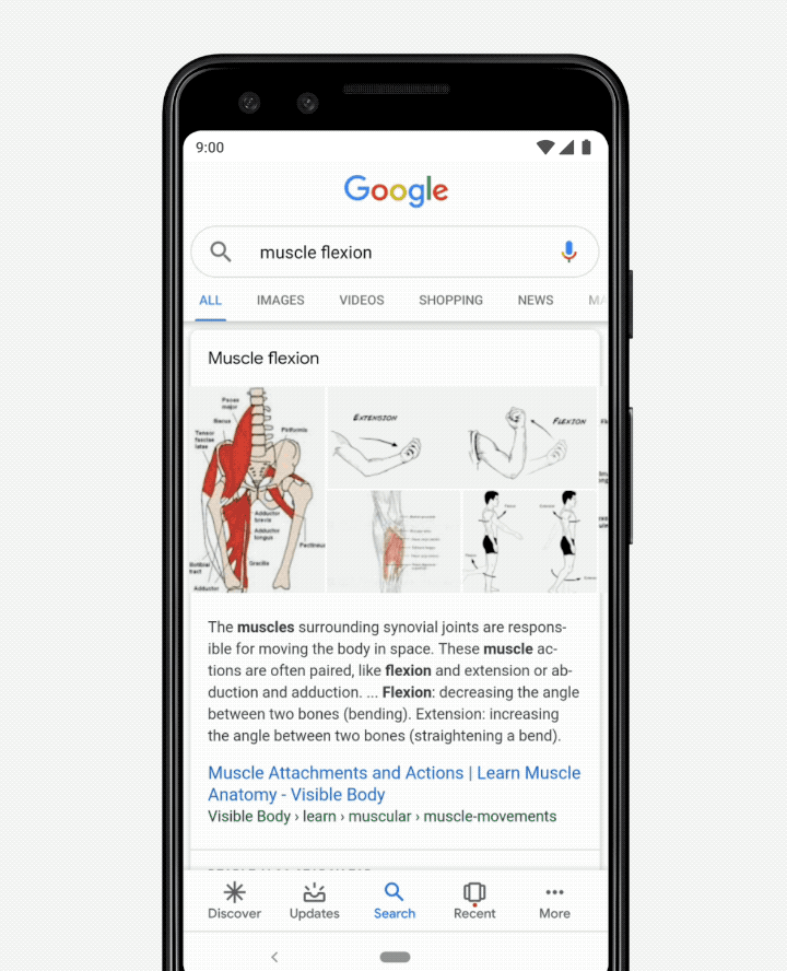 Ao fazer pesquisas sobre assuntos como "flexão muscular", por exemplo, será possível visualizar um modelo tridimensional de um músculo mostrando como o processo acontece - e será possível trazer a animação para o seu ambiente por meio do Lens. Outro exemplo dado foi a busca por animais específicos: "uma coisa é você ler que um grande tubarão branco tem 5,49 metros de comprimento, outra é ver isso de perto em escala com relação às coisas ao seu redor", explicou a companhia.