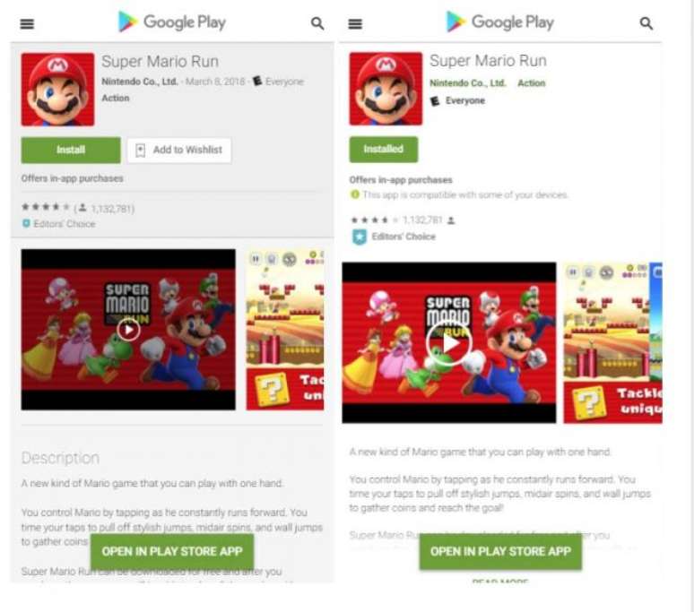 A primeira mudança e mais visível delas é que, agora, as imagens aparecerão de forma muito mais clara ao usuário. Se antes, as capturas de tela apareciam em um slide pequeno de fotos, a partir da mudança elas ficarão abertas em um tamanho maior na descrição. Além disso, caso o usuário queira ampliar a foto, ela aparece ocupando basicamente toda a tela.
