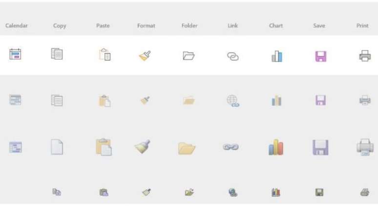 Com uma proposta que parece agradar muito mais aos usuários leigos, as mudanças de layout no Word serão disponibilizadas no próximo mês com a redução do espaço da barra de ferramentas no editor de textos. O software também contará com um novo esquema de ícones, cujas comparações com as versões anteriores pode ser vista a seguir:
