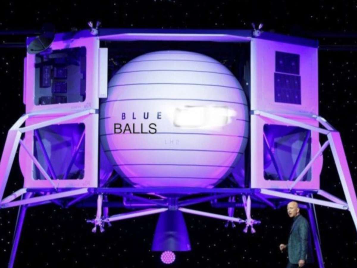 Dessa vez, Musk tweetou uma captura de tela com a notícia do anúncio e acrescentou a legenda "Oh, pare de provocar, Jeff" seguido de um emoji com uma piscadinha. Mas a "provocação" em questão só fica mais clara quando vemos a montagem que acompanha o tweet. Nela, Musk trocou o nome Blue Moon por Blue Balls.