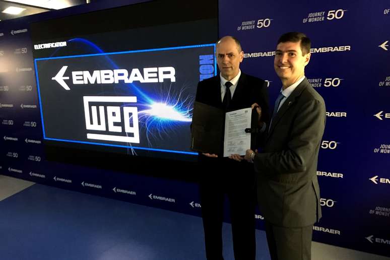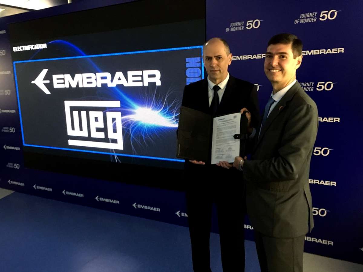 A Embraer e a WEG anunciaram hoje um acordo de cooperação científica e tecnológica para o desenvolvimento conjunto de novas tecnologias e soluções para viabilizar propulsão elétrica em aeronaves. A parceria, no âmbito de pesquisa e desenvolvimento pré-competitivo, busca acelerar o conhecimento das tecnologias necessárias ao aumento da eficiência energética das aeronaves a partir da utilização e integração de motores elétricos em inovadores sistemas propulsivos.