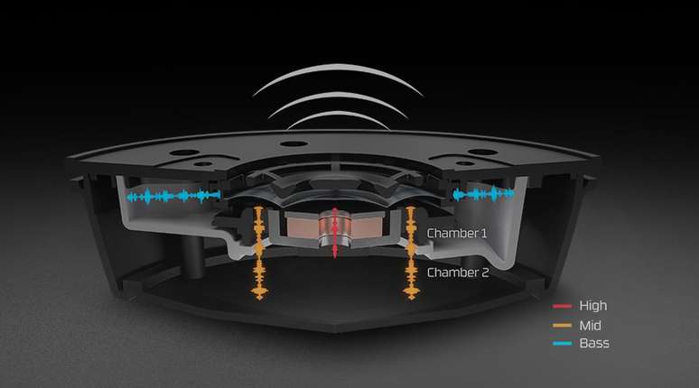 Em sua parte interna, o Cloud Mix conta com drivers de 40mm e duas câmaras sonoras em cada concha auricular. Segundo a fabricante, a tecnologia Dual Chambers, exclusiva da HyperX, separa os sons graves dos médios e agudos, reduzindo a distorção sonora e fornecendo áudio mais estável. Confira as características do produto: