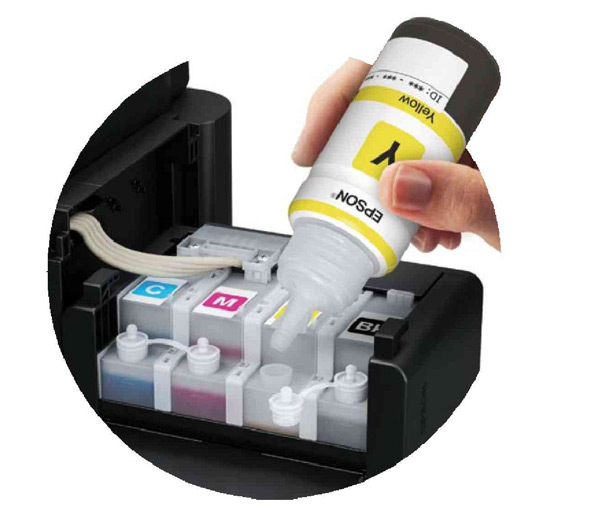 Essa tecnologia exclusiva da empresa japonesa usa garrafas de tinta que equivalem a 35 cartuchos de uma só vez. Cada impressora imprime 4 mil cópias em preto e 6,5 mil coloridas e sai de fábrica com um kit inicial incluso que deve ser abastecido com 4 cores: preto, ciano, magenta e amarelo. Além do alto volume de impressão, as garrafas são individuais e custam cada R$ 29,99. Quando acaba, não é preciso trocar todos juntos, só o tanque vazio. Apesar de fazer parte de um equipamento um pouco mais caro, o custo-benefício da impressão nessa linha é excelente, cerca de R$ 0,02 por página. Essa linha atende ao consumidor que precisa imprimir muito, mas busca economia sem perder a garantia de fábrica.