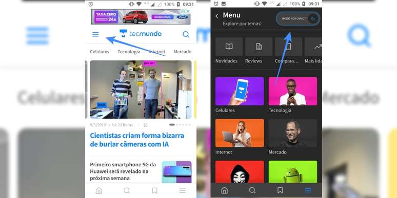 Pensando em vocês, o TecMundo também procurou tornar a leitura mais agradável e moderna. Tanto o app quanto o site possuem a alternativa escura.